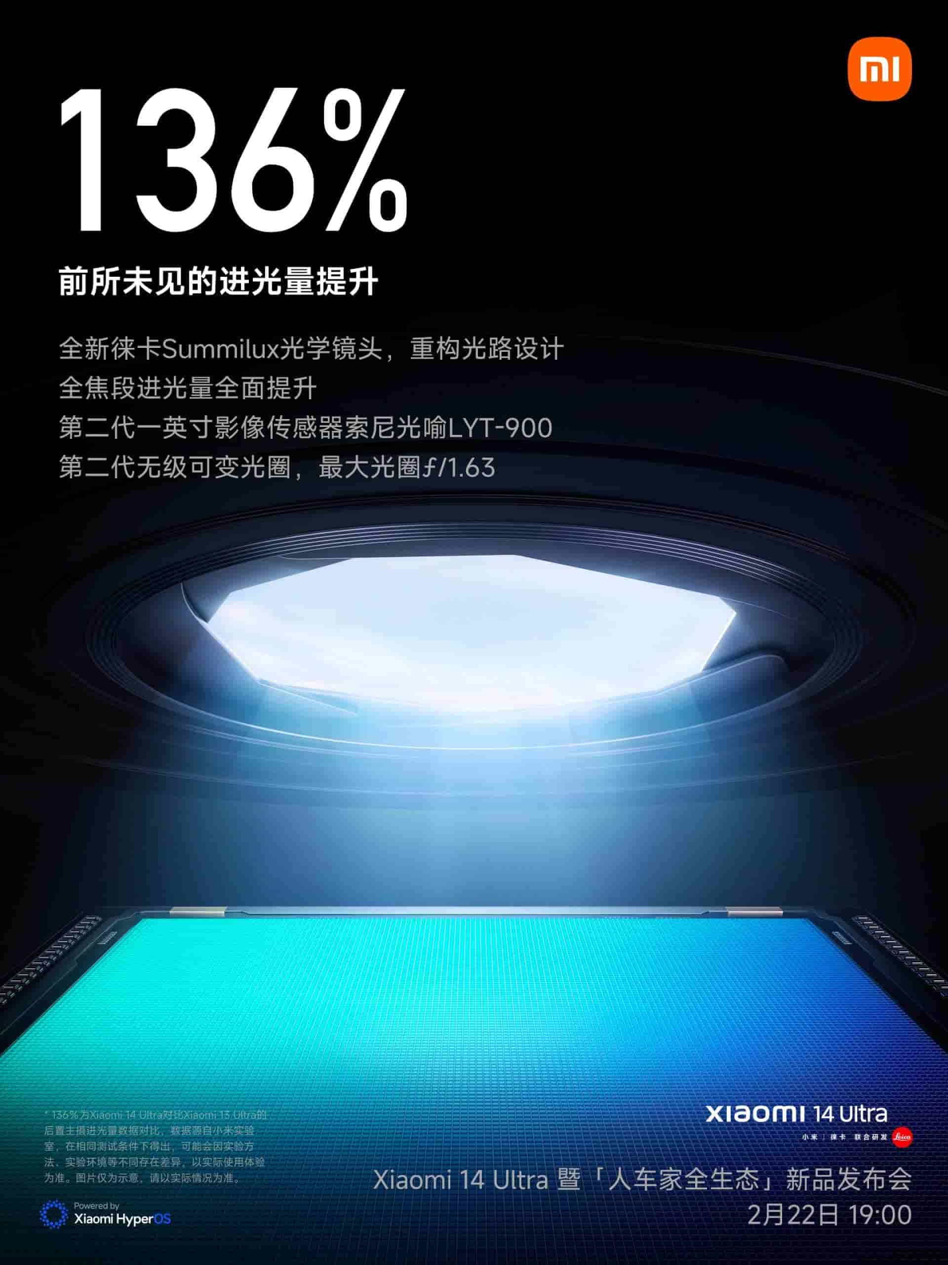 About the main camera, it will be a Leica Summilux optical lens with 136% more light input capability. The camera sensor will be the second generation Sony LYT900 one-inch image sensor, supporting a second generation step-less variable aperture of up to f/1.63.