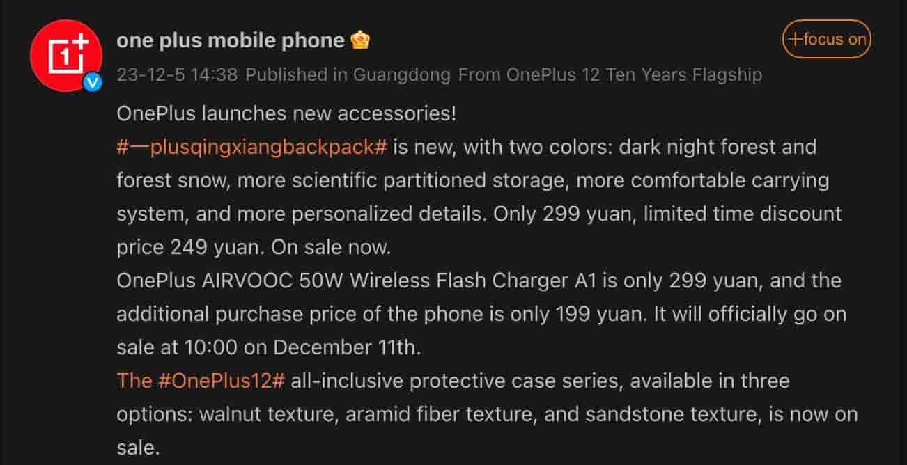 Much awaited OnePlus 12 launched officially in China; OnePlus 12 protective case series, OnePlus backpack and AIRVOOC 50W flash charger A1 also introduced