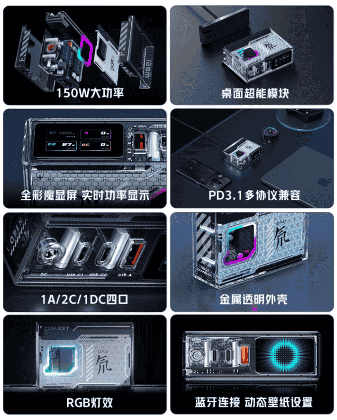 As far as the design of the charging head is concerned it comes with the built-in metal transparent design that shows you the components of the charging head. You get real-time information about charging status, input, and output power, and other parameters. You get the immersive gaming vibe with the RGB light effects. Its standard package comes with a DC power cord while in case of incompatibility, the company will deliver compatible cable.
