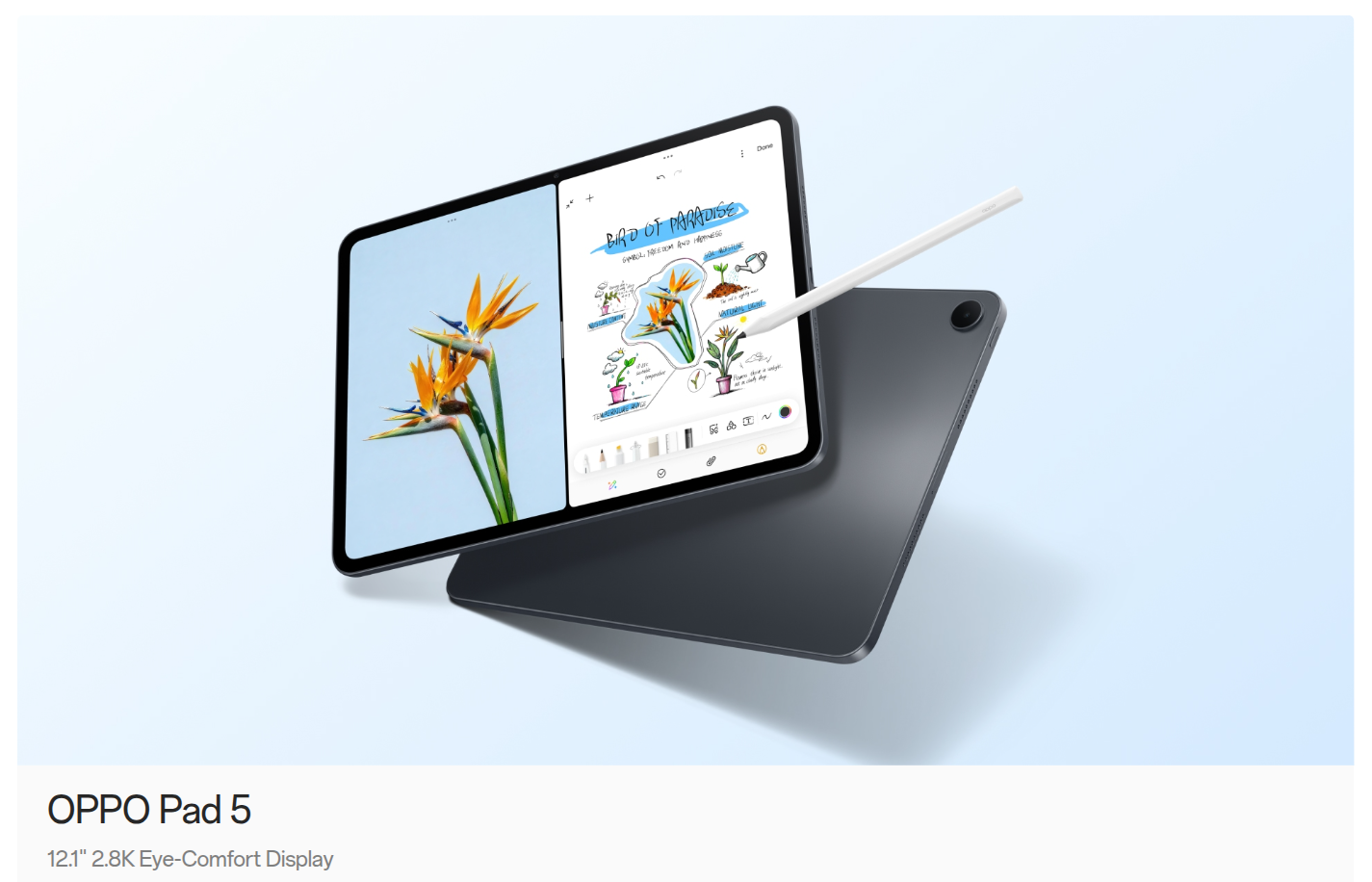 Speaking more, as per the OPPO India website listings, the 8GB/128GB WiFi-only model has been revealed for the OPPO Pad 5 tablet, and it will be featuring a 12.1″ eye-comfort display that supports 2.8K screen resolution. A Black color choice and stylus support have also been revealed.