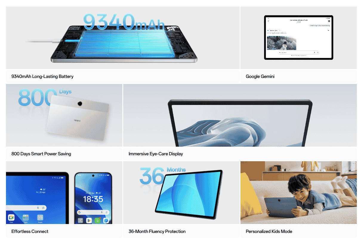 The OPPO Pad SE tablet was teased in the Malaysian market late last week and it is notably going to feature key specs such as an 11″ immersive eye-care display screen, 9340 mAh battery backup, and Personalized Kids Mode. As mentioned, the brand has now announced the OPPO Pad SE pre-order for Malaysian consumers and interested customers can pre-order it for just MYR 599 (MYR 100 discounted price from the actual MYR 699 pricing). Along with the discounted price, free gift and point benefits are also announced as its purchase offers during the pre-order period.