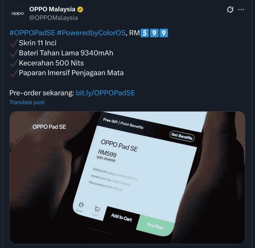 OPPO – the Chinese consumer electronics maker will soon be debuting the latest Pad SE tablet in its home market and it is also set to arrive soon in Malaysia too. Now, the pre-order for the device has been announced in the Malaysian market and it is currently live.