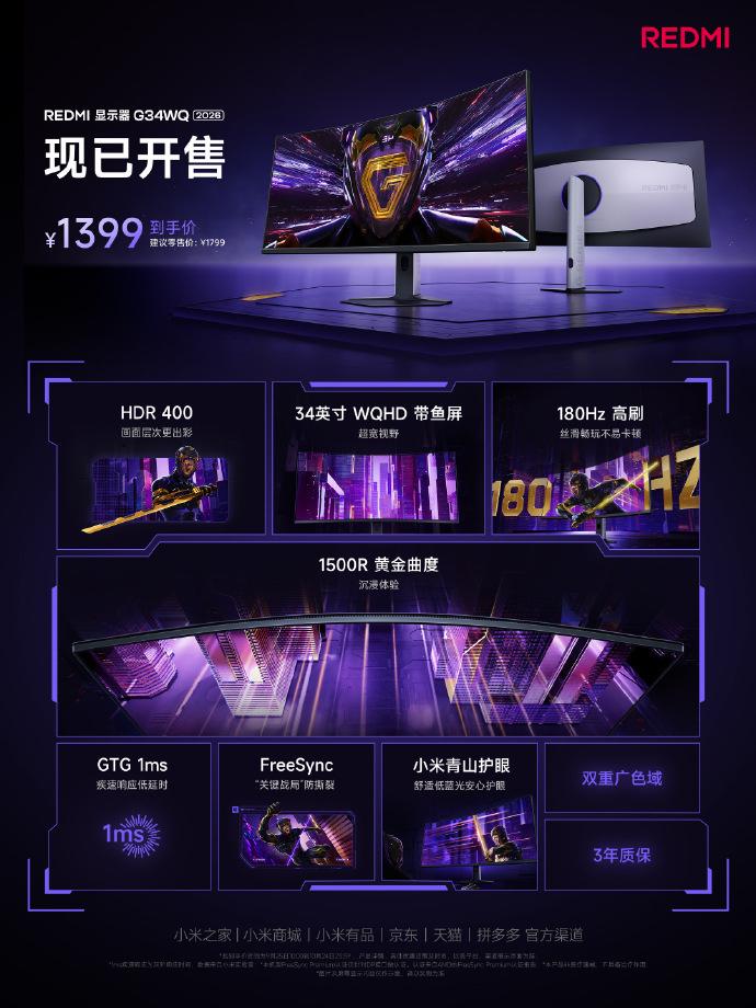 Redmi Monitor G34WQ 2026