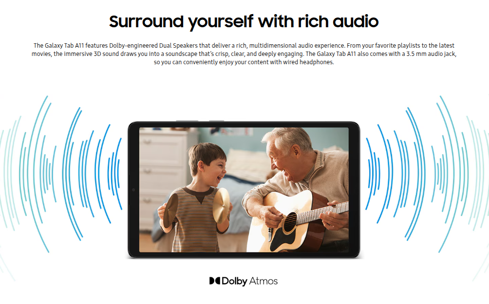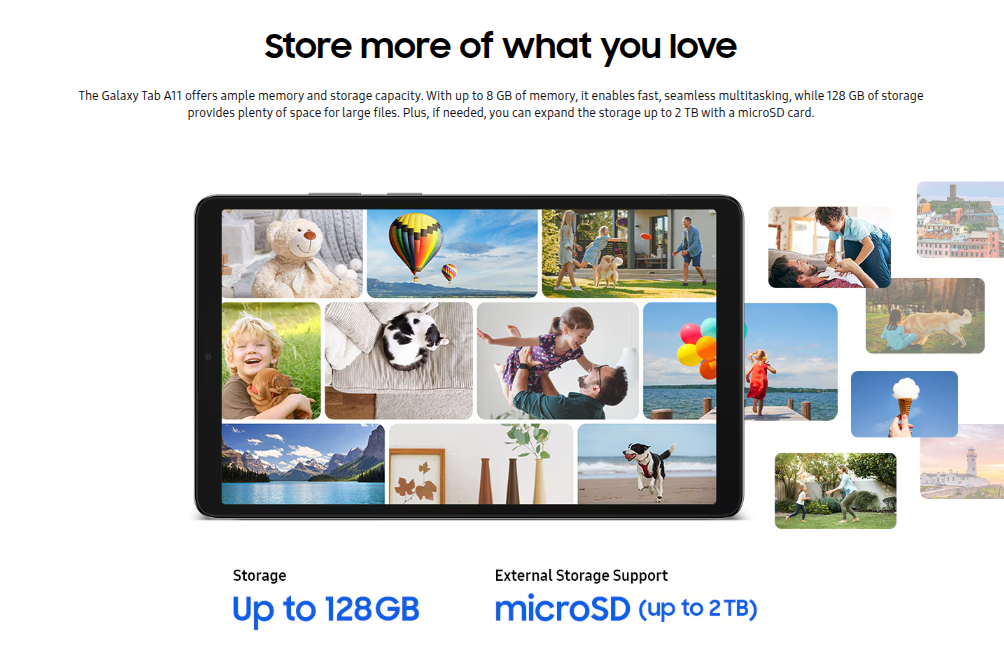 Coming to the product pages that are currently live in UAE (first spotted by WinFuture), two storage options (64GB/128GB) and two color choices (Silver/Gray) are listed for both the LTE and WiFi-only versions of the Galaxy Tab A11 tablet. Additionally, the full specifications of the device have also been revealed, and these notably include a 2.20GHz-clocked octa-core processor (~ MediaTek Helio G99 as per Google Play Console), 8.7″ TFT display (with 1340 x 800 pixels WXGA+ resolution, 90Hz refresh rate, 16M color depth), 8MP main camera, 5MP front camera, 5100 mAh battery, 2G/3G/4G network (for LTE version), WiFi 5 (with 2.4GHz + 5GHz dual band support), Bluetooth v5.3, USB 2.0, GPS (and other location positioning services), dual speakers (supporting Dolby Atmos), 3.5mm audio jack, up to 2TB microSD card slot, 8.0mm thickness, and 337gm weight.