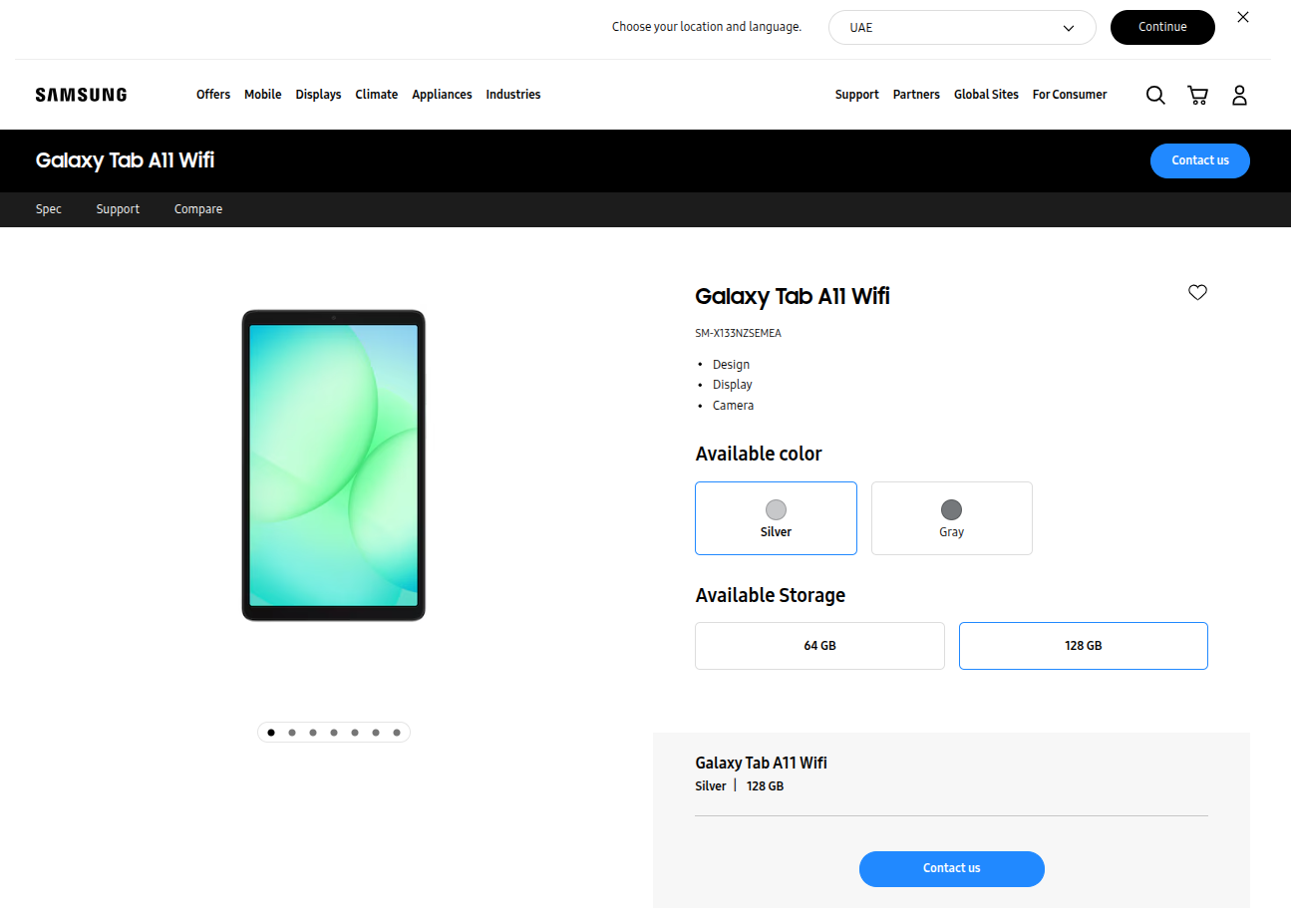 Samsung Galaxy Tab A11 LTE and WiFi-Only Versions – UAE Product Pages