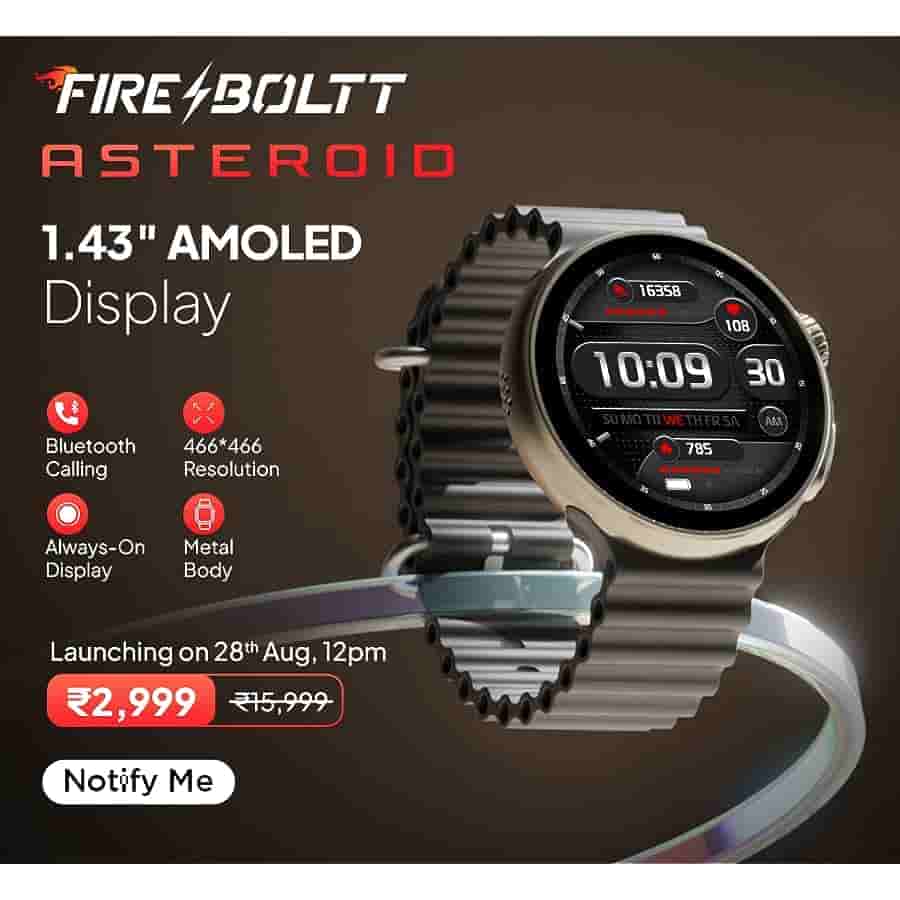 The Fire-Bolt Asteroid Outdoor Rugged Smartwatch is going to launch on August 28, 12 PM in India with a price tag of Rs 2.999. You can turn on the Notify Me button on the e-commerce platform and get notified when the product is available on the platform.