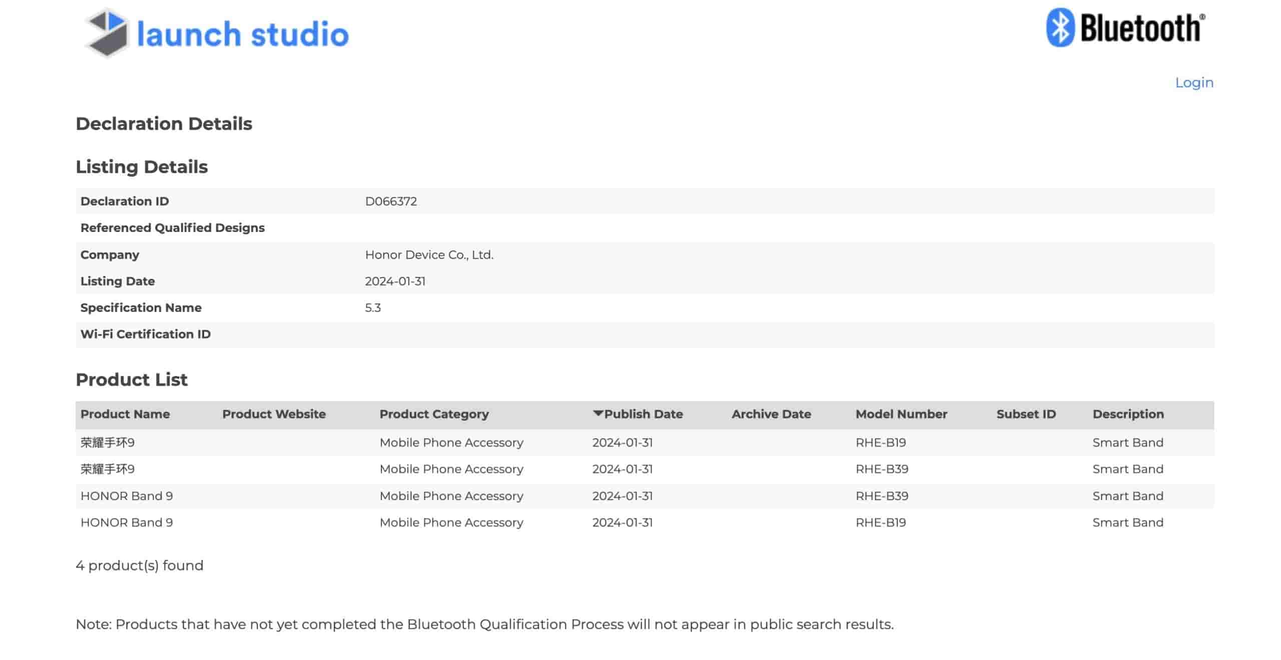 Honor Band 9 has been spotted on the Bluetooth SIG certification website with two different model numbers- RHE-B39 and RHE-B19.
