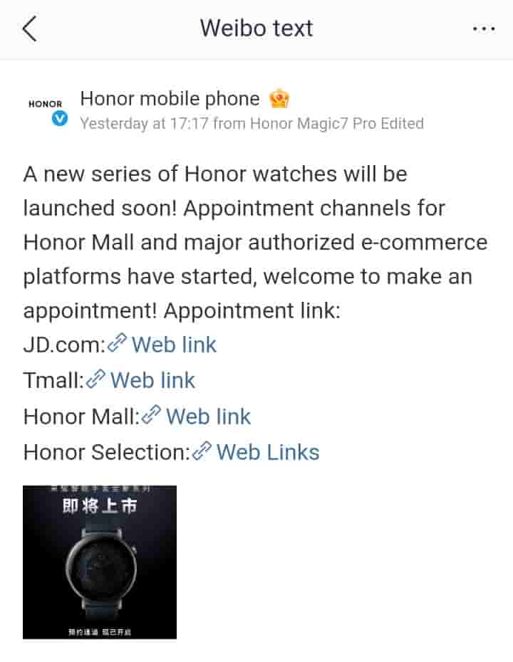 Via a new Weibo update, a new series of Honor smartwatches has been teased in the Chinese market, and the latest devices are pointed out to launch soon in the country. As mentioned, the pre-reservation channels have also opened, and Chinese customers can book it on Honor Mall and other major authorized e-commerce platforms.