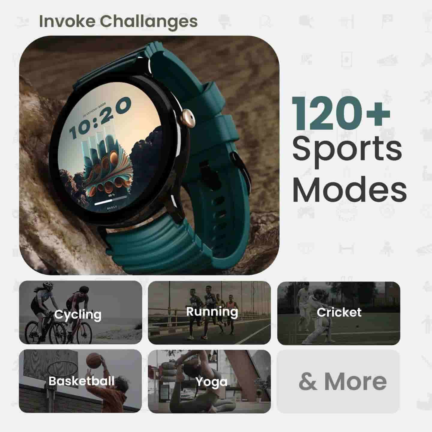The smartwatch is equipped with multiple health sensors or monitors which include a 24×7 heart rate monitor, SpO2 blood oxygen/saturation monitor, female menstrual cycle tracker, activity tracker, sleep monitor, blood pressure monitor, and a breath training assistant. More than 120+ sports modes for various sports including cycling, running, cricket, basketball, yoga, and more have also been provided on the device.