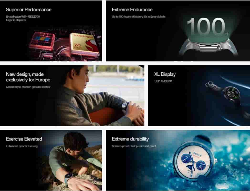 In the health suite, the smartwatch has more than 100 sports modes and six different modes for physical activity. For enhanced location accuracy, it supports dual-frequency L1+L5. It is backed by a 500 mAh battery that is said to provide 100 hours of battery life. The OnePlus Watch 2 operates on Google’s Wear OS. It packs 2GB RAM and 32GB storage. Its 5ATM+IP68-rated body makes it water and dust-resistant.