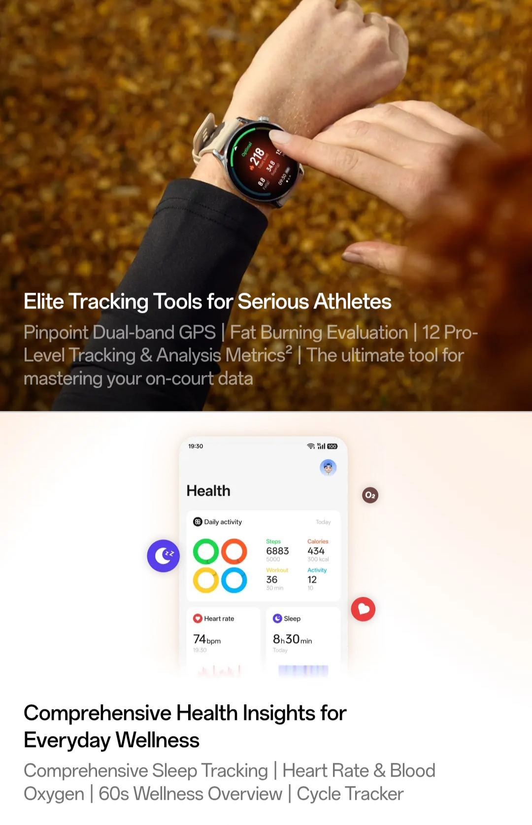 Coming to the health features- 60s wellness overview, sleep tracking, heart rate monitoring, daily activities and achievement reminders, Blood Oxygen monitoring, breathing exercise, fall detection, cycle tracker, 360 degree mind & body tracker, fat burning evaluation, and wrist temperature. It comes with over 100 sports modes with 6 types of automatic recognition (running, brisk walking, cycling, swimming, rowing machine, elliptical machine). It boasts 5ATM, IP68 rating, and 11 Pro-level Tracking & Analysis metrics.