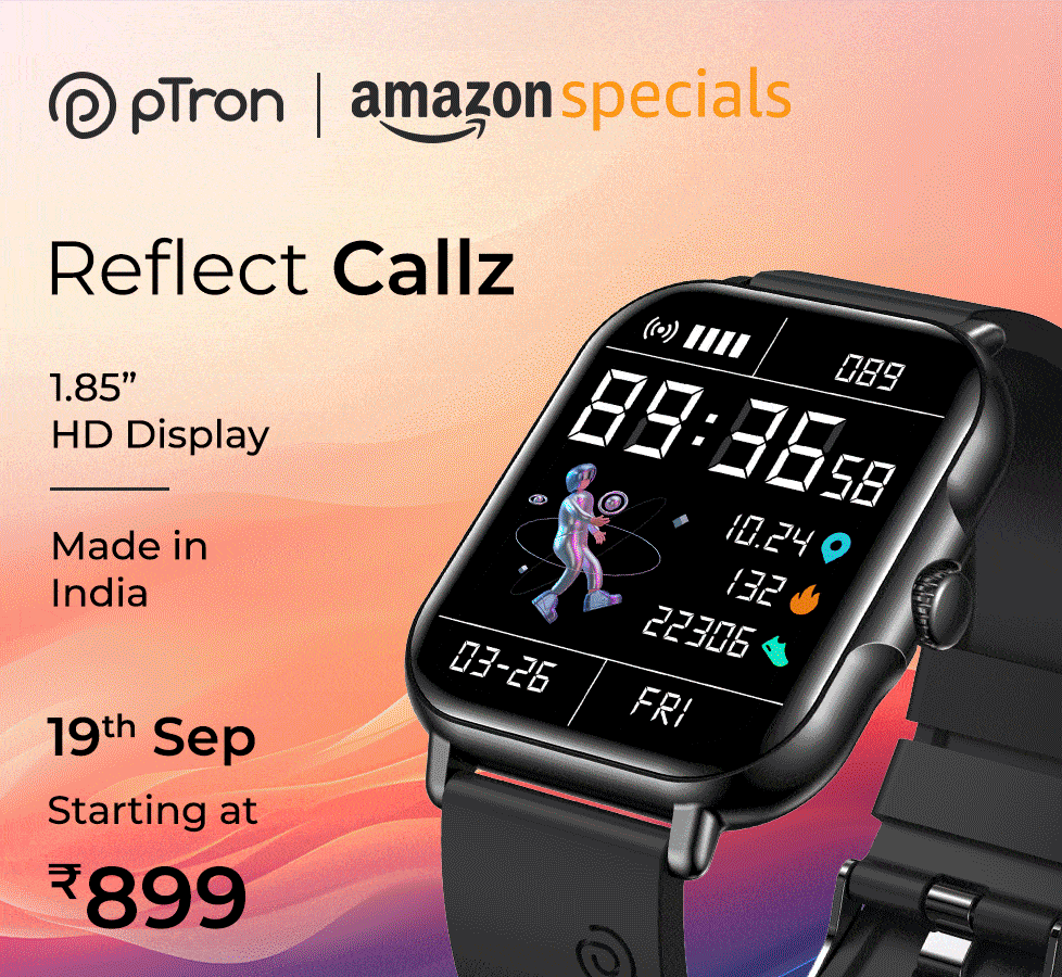 pTron’s Reflect Callz Smartwatch will be available for sale on Amazon India on 19th September 2023. The smartwatch will be available for a special price of Rs 899.