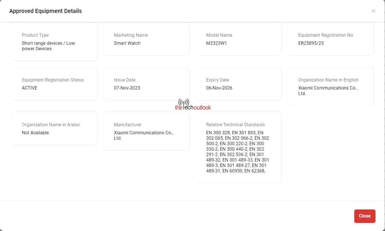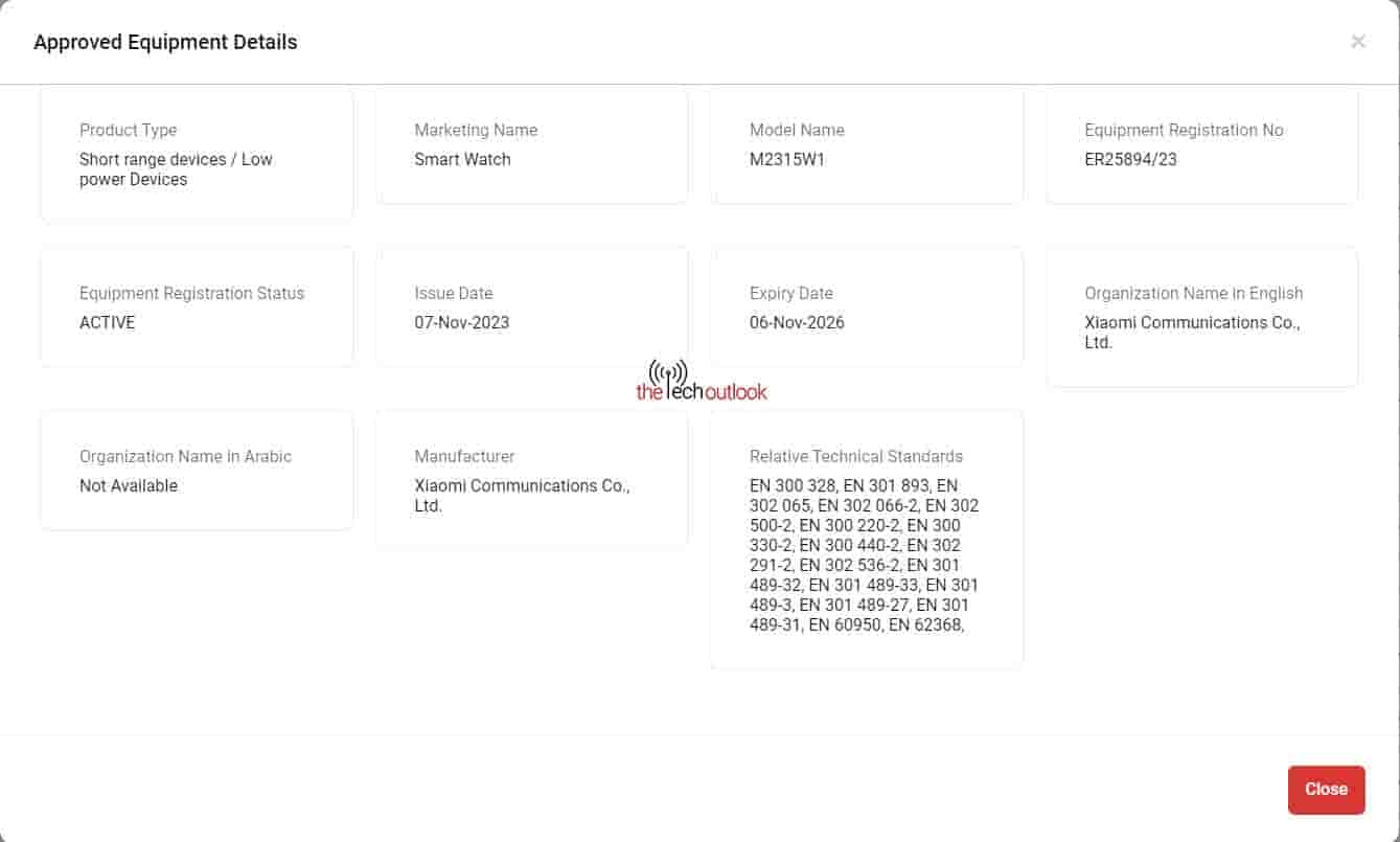 Two Xiaomi smartwatches have received the TDRA certification and have made their appearance on the database with the model numbers – M2315W1 and M2323W1. The two have received the TDRA certification with the equipment registration numbers – ER25894/23 and ER25895/23, respectively.