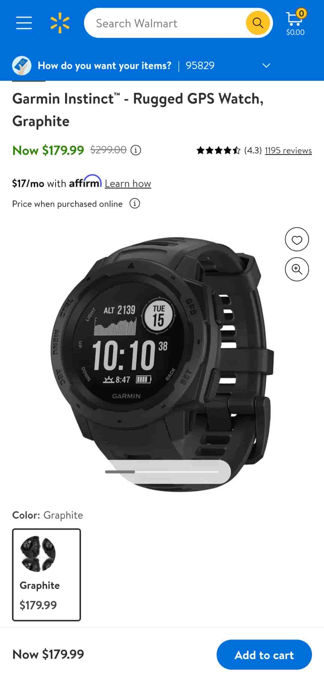 The Garmin Smartwatch is available to be bought at an easy EMI starting from $17 per month with Affirm. It is available in Graphite color and has good overall reviews.