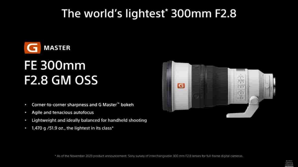 The FE 300mm F2.8 GM OSS lens from Sony is the world’s lightest 300mm F2.8 lens and is ideally balanced for better handheld shooting. It is only 1,470 gm/ 51.9 oz. in weight, and as mentioned, is the lightest in its class.