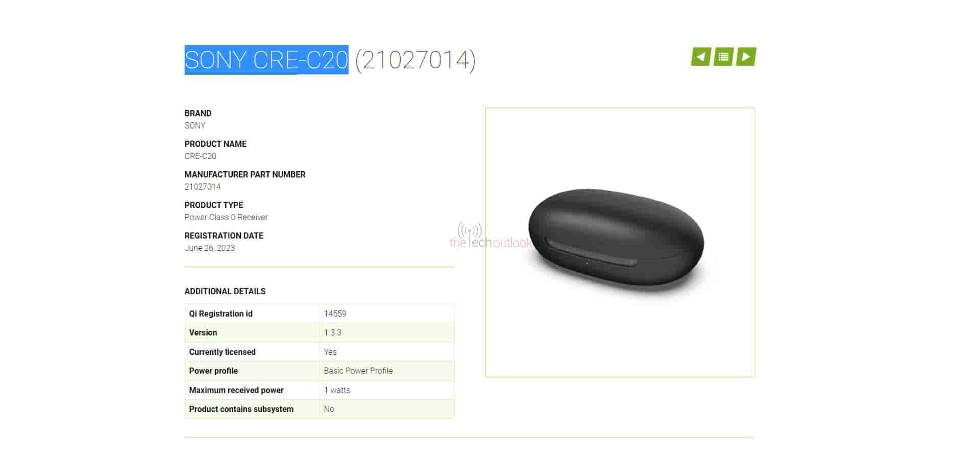 Seems like Sony CRE-C10 will soon be getting a successor as we recently spotted Sony CRE-C20 on the Wireless Power Consortium website with model number 21027014.