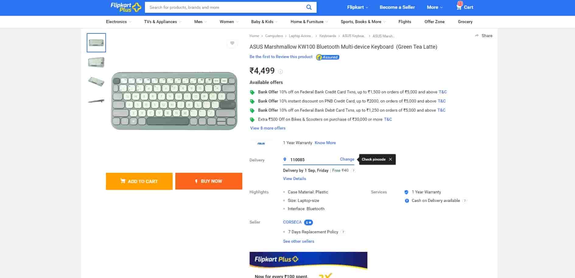The ASUS Marshmallow KW100 Bluetooth Multi-Device Keyboard is available to buy from Flipkart at Rs 4,499. This keyboard comes in a Green Tea Latte shade.