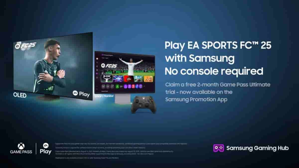 Samsung TV and monitor owners can now play EA SPORTS FC 25 through the Xbox app with Xbox Cloud Gaming (Beta) on supported devices. All players need to get started is a compatible controller and Xbox Game Pass Ultimate, which includes EA Play. Apart from this, there is also a special promotion offer; new Xbox Game Pass subscribers can receive a two-month Ultimate Game Pass subscription. The offer is available to both existing Samsung TV owners and those who buy a new qualifying TV.