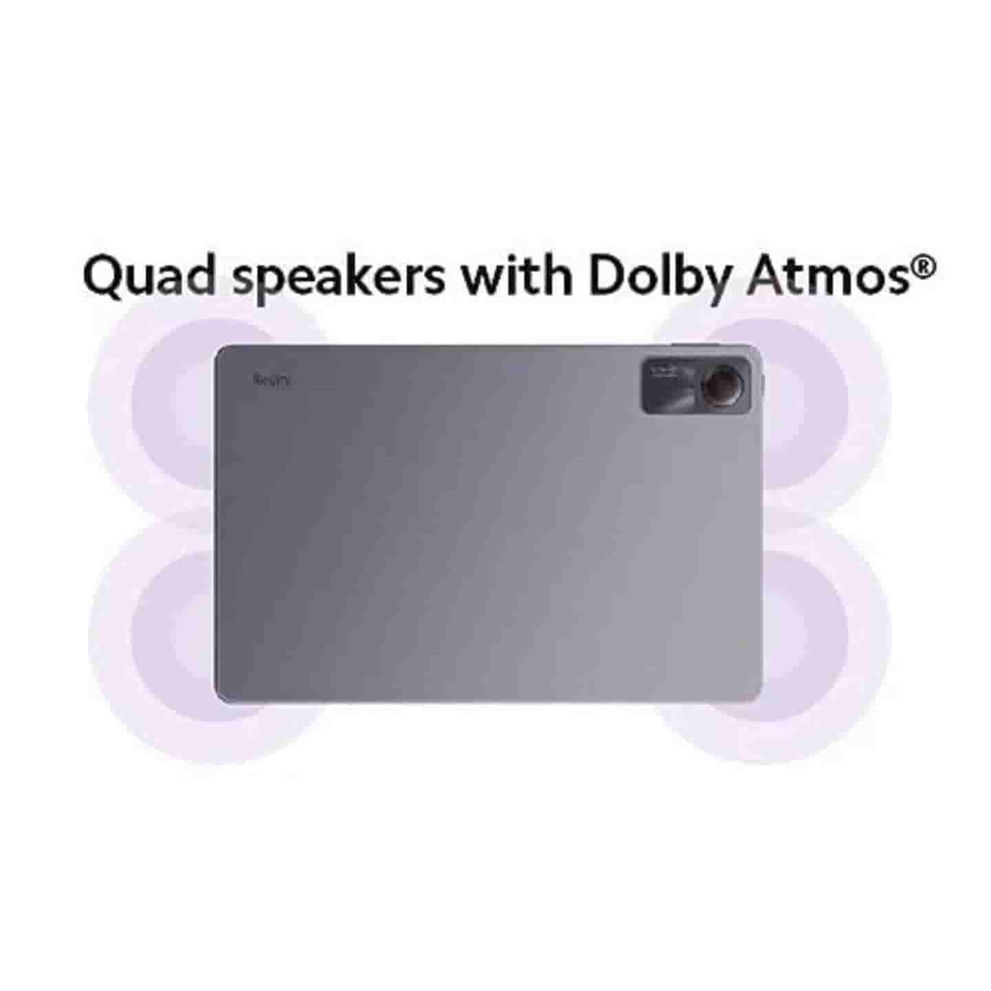 Now regarding the renders that have been shared, as mentioned, the device design-wise is similar to the Redmi Pad and comes in three colour choices green, grey and purple. The correct marketing names of the colour variants are not yet available. The renders also reveal that the device will support a quad-speaker setup with Dolby Atmos support. At the bottom side panel, we are also able to spot a USB type-C charging port and a 3.5mm audio jack.