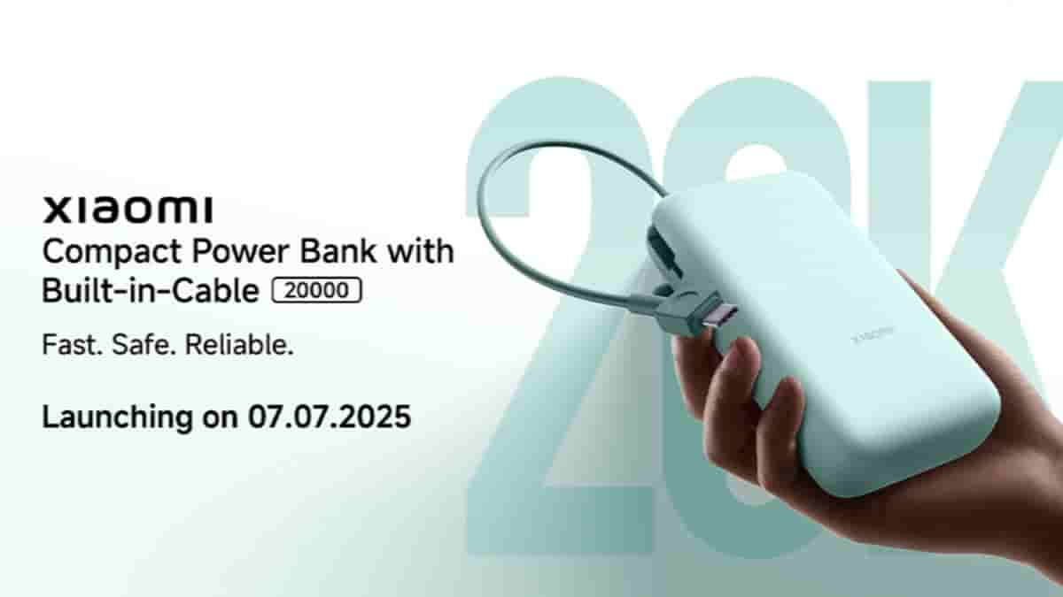 Xiaomi is launching its new Compact Power Bank with a built-in cable in India on 7th July 2025. Designed to be practical, safe, and travel-friendly, this power bank comes with a large 20,000mAh capacity and the ability to charge up to three devices at once. It also features smart power adjustment, ensuring each connected device gets the right amount of power.