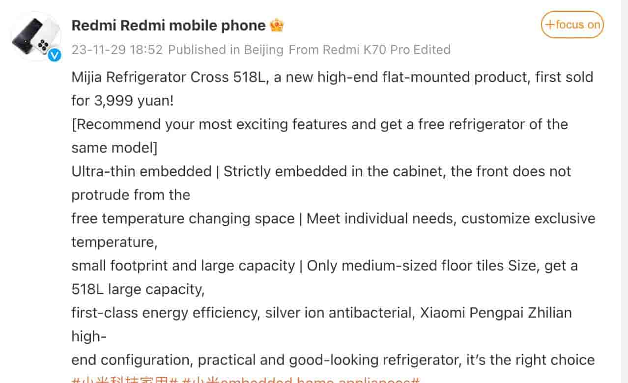 This newly launched refrigerator arrives at a first-selling price of CNY 3999. It will be available for purchase via Xiaomi Mall, Xiaomi Home, JD.com and T-mall.