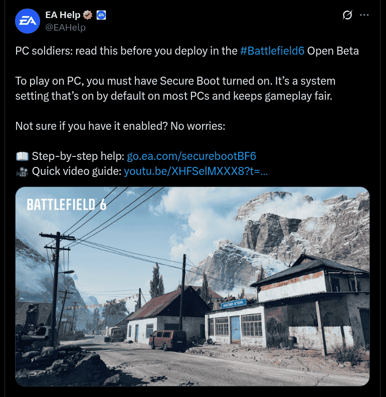 With the Secure Boot turned on and enabled on the PC device, users will easily be able to play Battlefield 6 Open Beta when it becomes available to them.