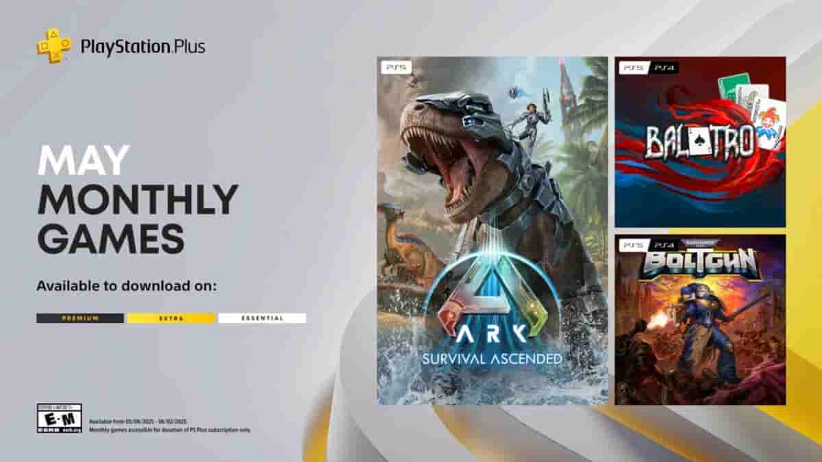 PlayStation has officially revealed May 2025 PlayStation Plus Monthly Games lineup that includes Ark: Survival Ascended, Balatro and Warhammer 40,000: Boltgun.