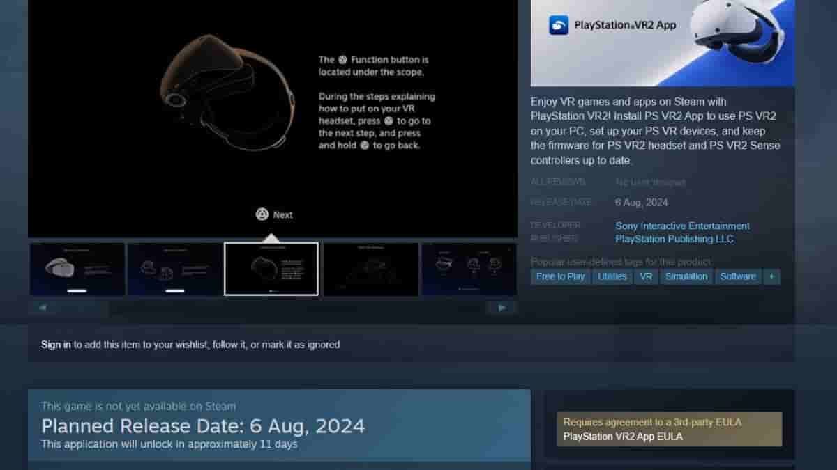 PlayStation VR2 App Listed On Steam, Will Release On 6th August