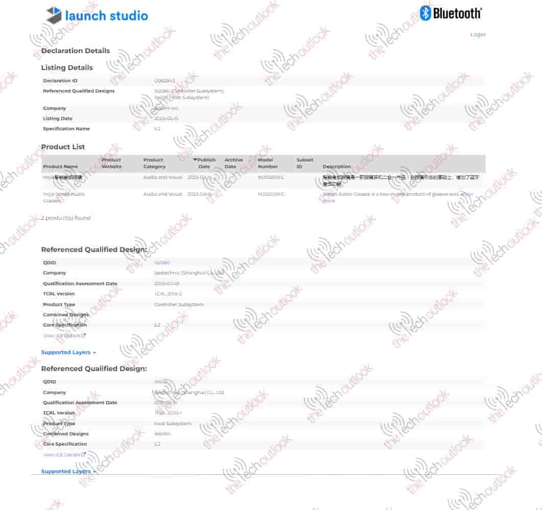 Mijia Smart Audio Glasses listed on Bluetooth SIG Certification website , launch seems imminent