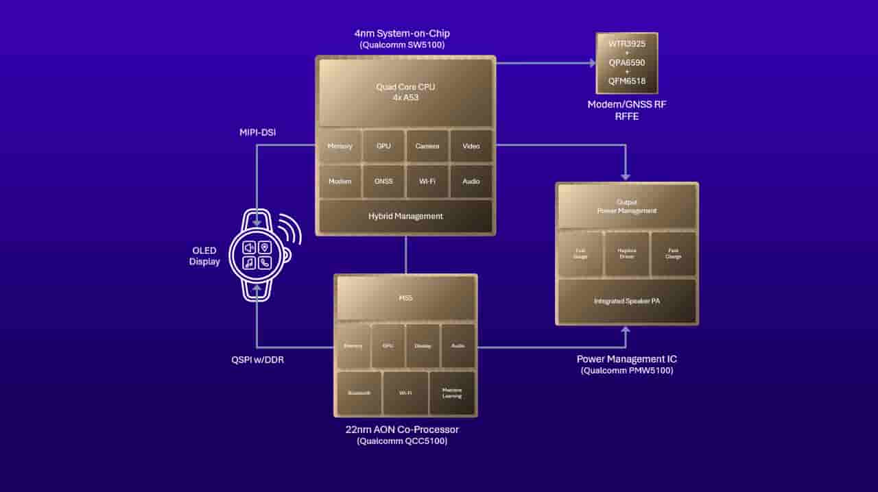 Qualcomm’s latest Snapdragon W5+ Gen 2 and Snapdragon W5 Gen 2 chips have been officially unveiled with improved GPS accuracy, and the two will be capable of offering smartwatch devices/power-efficient devices with an enhanced as well as superior performance. These latest Snapdragon chips have 4nm process nodes (main AP), whereas the Snapdragon W5+ Gen 2 additionally has 22nm coprocessor process nodes too. Audio/WiFi/GNSS lower power islands and RBSC/TWM/Deep Sleep/Hibernate lower power states are also part of them, and best-in-class LTE standby and VoLTE supports are given.
