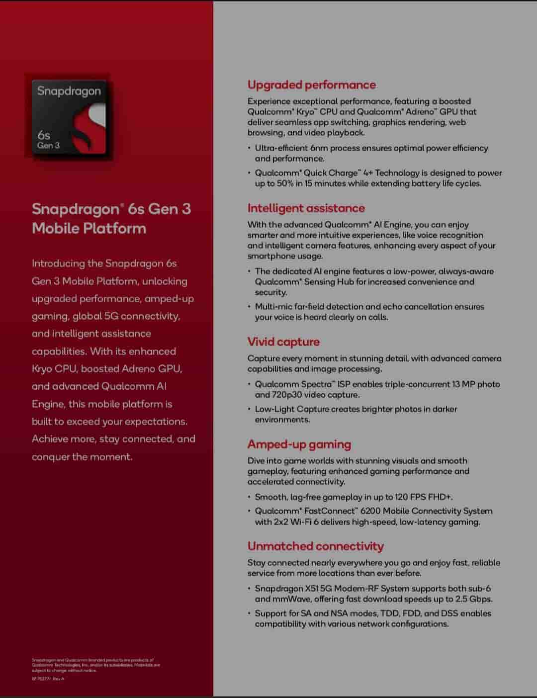 Let’s dive in to learn the detailed features of this newly launched Snapdragon 6s Gen 3 SoC