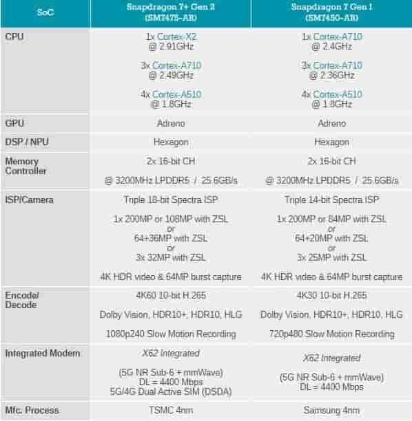 You can here take a look at the brief comparison between the new Snapdragon 7+ Gen 2 and Snapdragon 7 Gen 1.