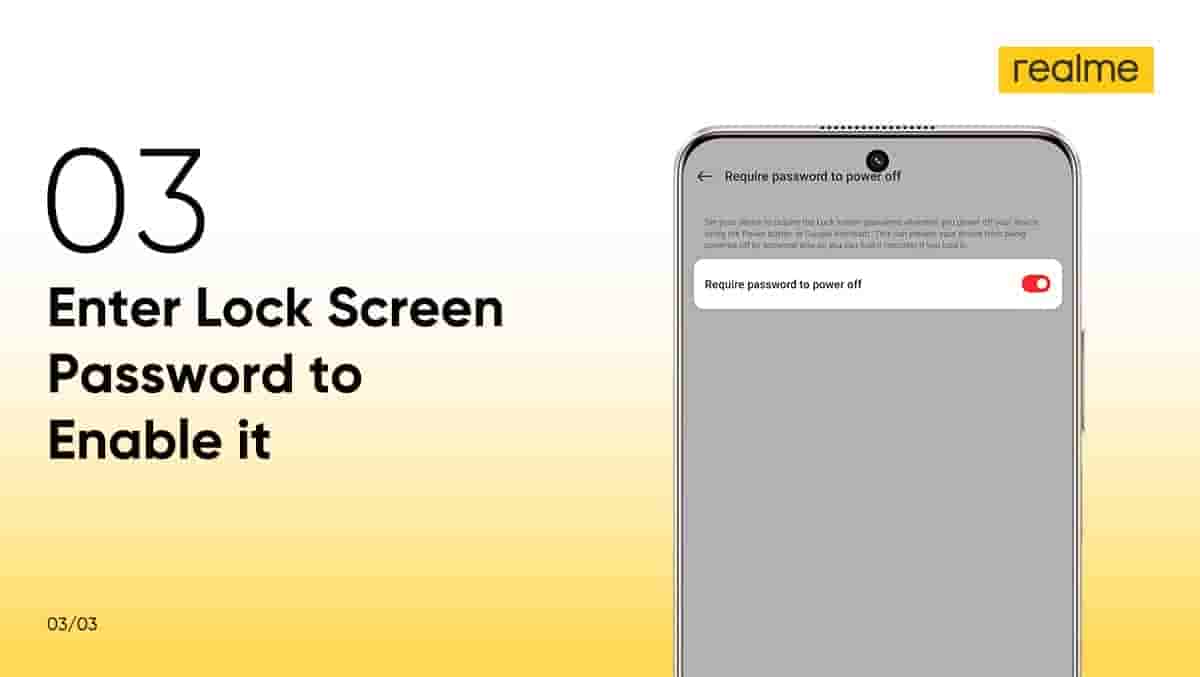 Facing the problem of your device being powered off when the screen is locked? Well, Realme’s latest update is here to solve your issue. Realme has introduced a new security feature called Require Password to Power off. With this newly added feature, your device will require the lock screen password whenever you power off your device using the power button.