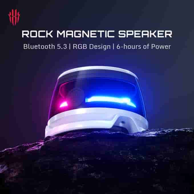 REDMAGIC has announced a new Rock Magnetic Bluetooth Speaker. This new Mag-based compact speaker comes with a Cyberpunk design and neon-lit aesthetic that makes it look like a perfect sound companion. It comes equipped with a 3W output speaker and a 400mAh battery that offers 6 hours of playback time. This speaker is easy to attach with compatible devices or you can use it with the magnetic sticker that can be attached to this speaker. It supports multi-device connectivity and stays connected with Bluetooth v5.3.