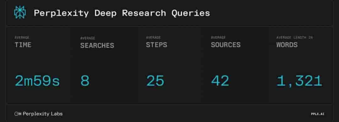 When a user asks a Deep Research question, Perplexity performs dozens of searches and reads hundreds of sources and reasons through the material to autonomously deliver a comprehensive report. Deep Research is made free for all, though non-subscribers get to ask up to 5 queries per day while Pro users can ask 500 queries per day.