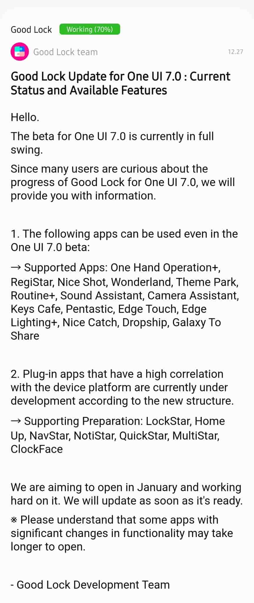 About the release of these apps/features, the Good Lock Development Team aims to open it next month in January 2025, the same month during which Samsung is believed to introduce the official stable version of its One UI 7 custom skin. Once the new Good Lock version is ready, users will be intimated. However, do note that certain apps/features that hold significant changes in functionality may probably take longer to be made available.