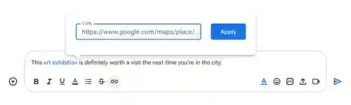 In the coming weeks on the web and Android, users will be able to link text in messages the same way we usually do in Google Docs or Slides. Just select the text you want to hyperlink, click on the “Insert link” icon in the formatting toolbar, and paste or type the URL. This would save the users from the hustle of pasting long URLs to the messages.