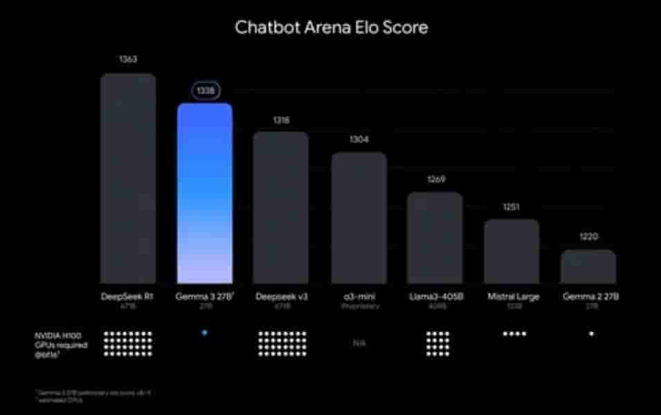 Google has also shared a chart that ranks AI models by Chatbot Arena Elo scores. As per which Gemma 3 27B which required only a single GPU, outperforms Deepseek V3, o3-mini, and Llama 3- 405B models.