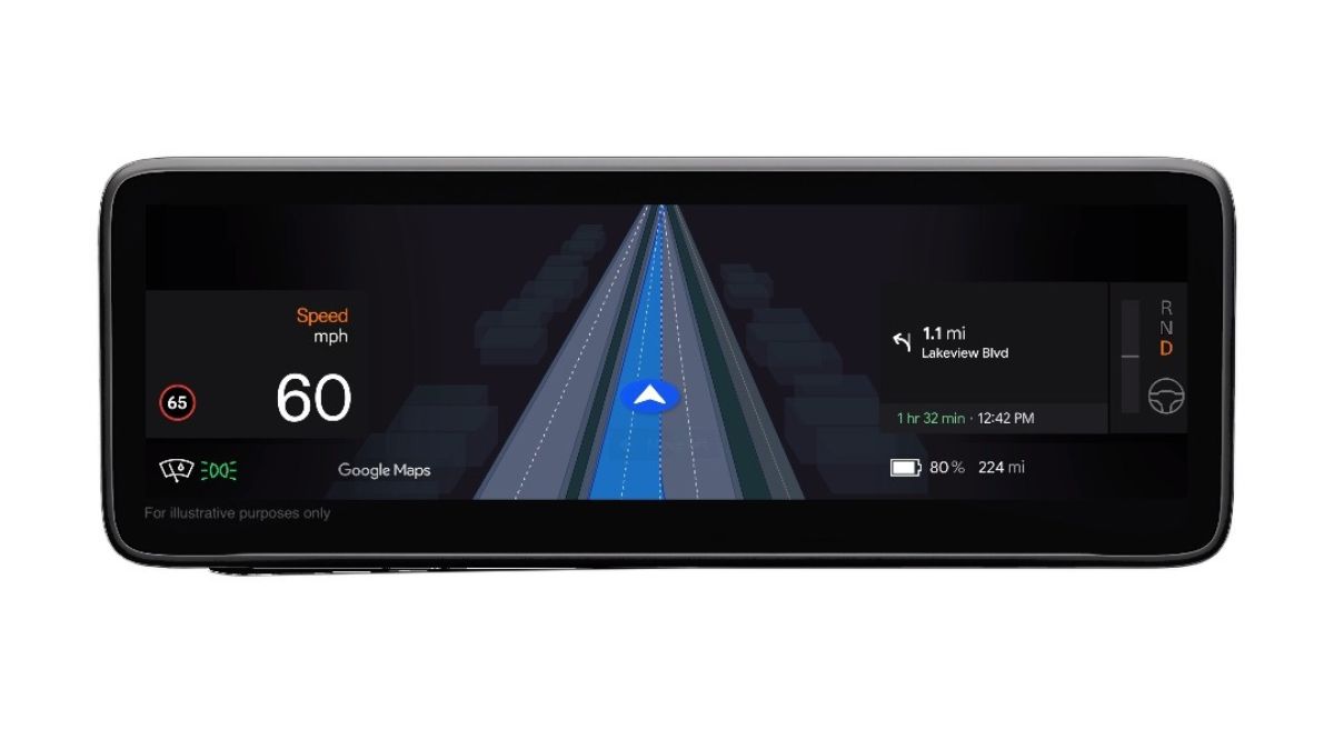 For live lane guidance, Google’s AI in the vehicle analyzes lane markings and road signs as they’re captured by the car’s front-facing camera. This real-time road information is instantly integrated with Google Maps’ powerful navigation capabilities, so you get even more precise guidance alongside the live traffic, ETAs, and alerts you already rely on.