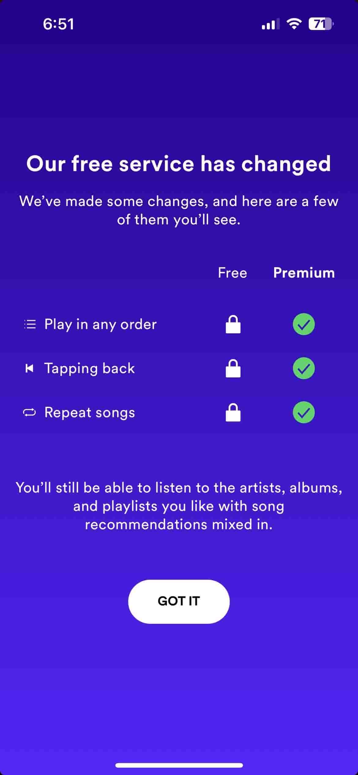 Spotify has made some changes to its free service in order to make Indian listeners spend some bucks for it. Indian Spotify listeners won’t be able to play songs in a specific order, repeat songs, or listen to the previous songs.