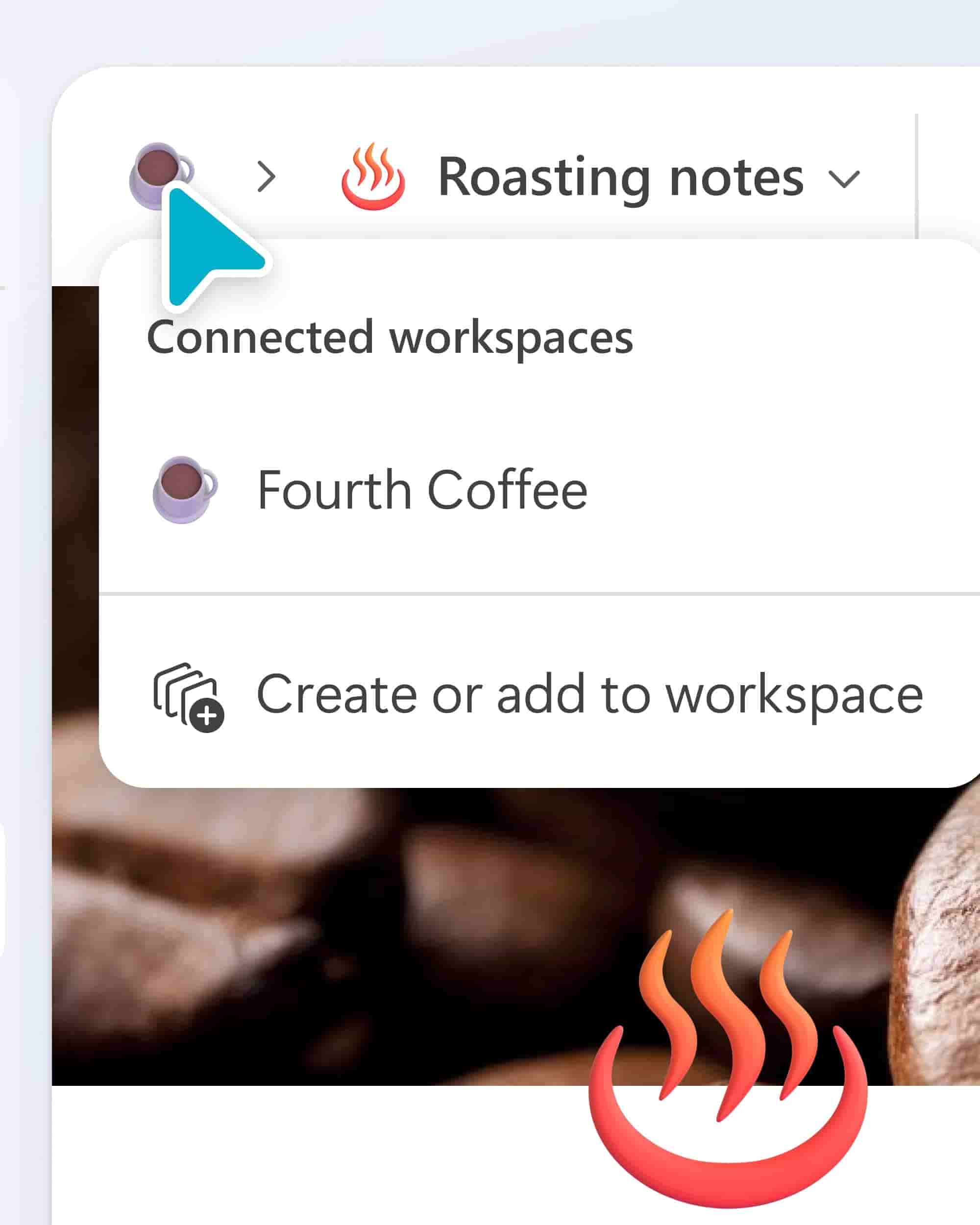 - Add your Loop components, pages, or ideas to a workspace directly from the breadcrumb at the top. You can add it to existing workspaces or create brand-new ones.