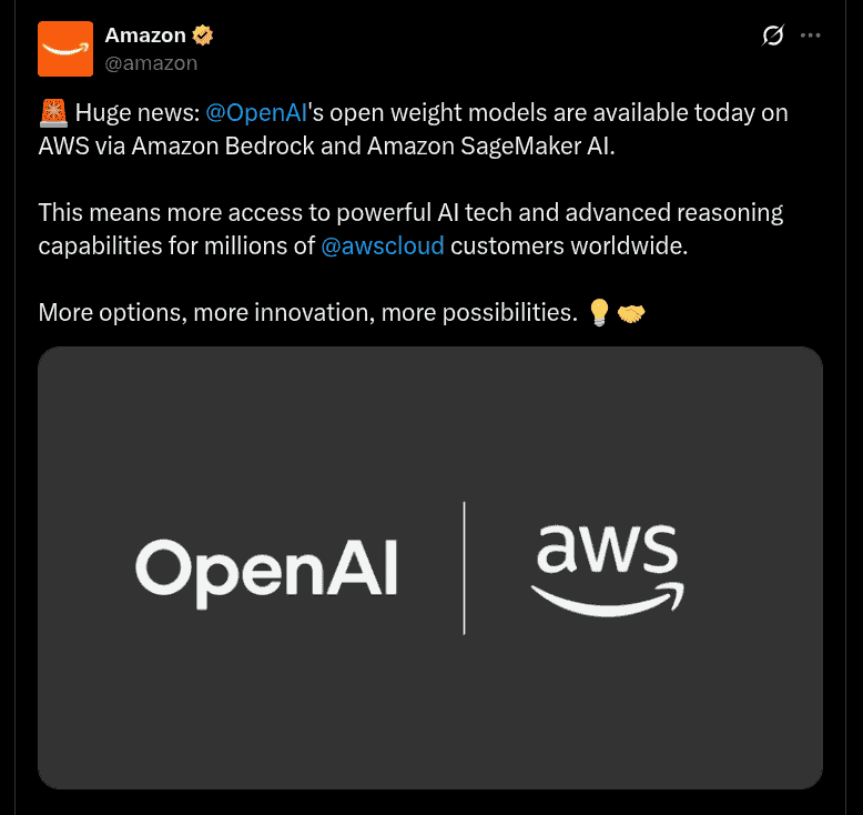 OpenAI New Open-Weight ‘gpt-oss-120b’ and ‘gpt-oss-20b’ Models Introduced; Trained on NVIDIA GPUs; Available Now on AWS Via Amazon Bedrock and Amazon SageMaker AI