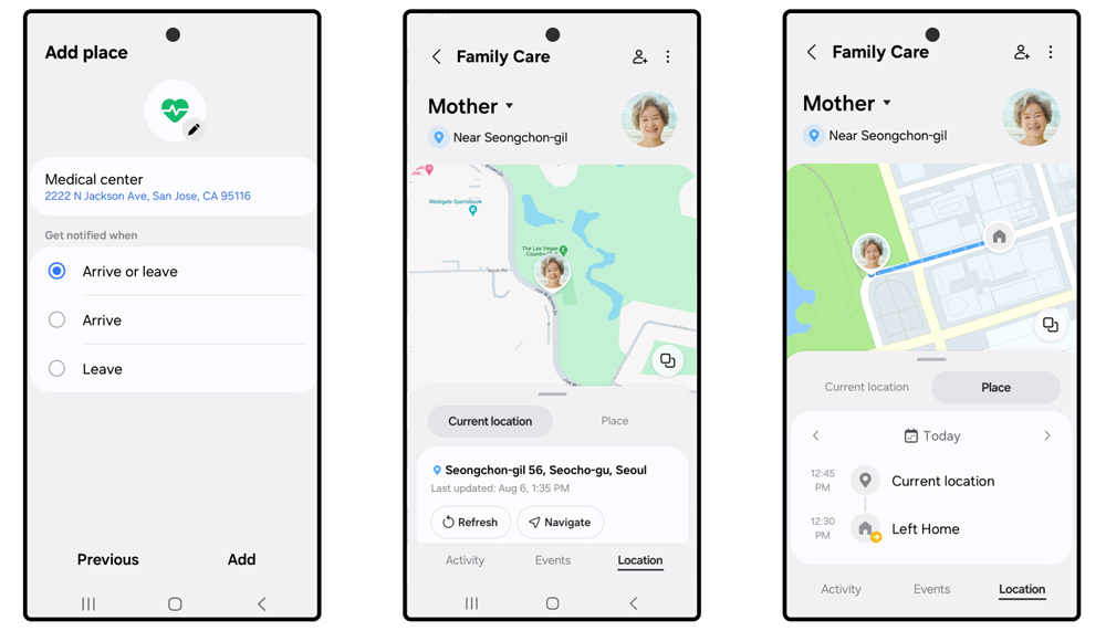 If care recipients use the Samsung Health app, caregivers can also view details such as wake-up times, bedtimes and daily step counts, enabling a more proactive approach to health management.