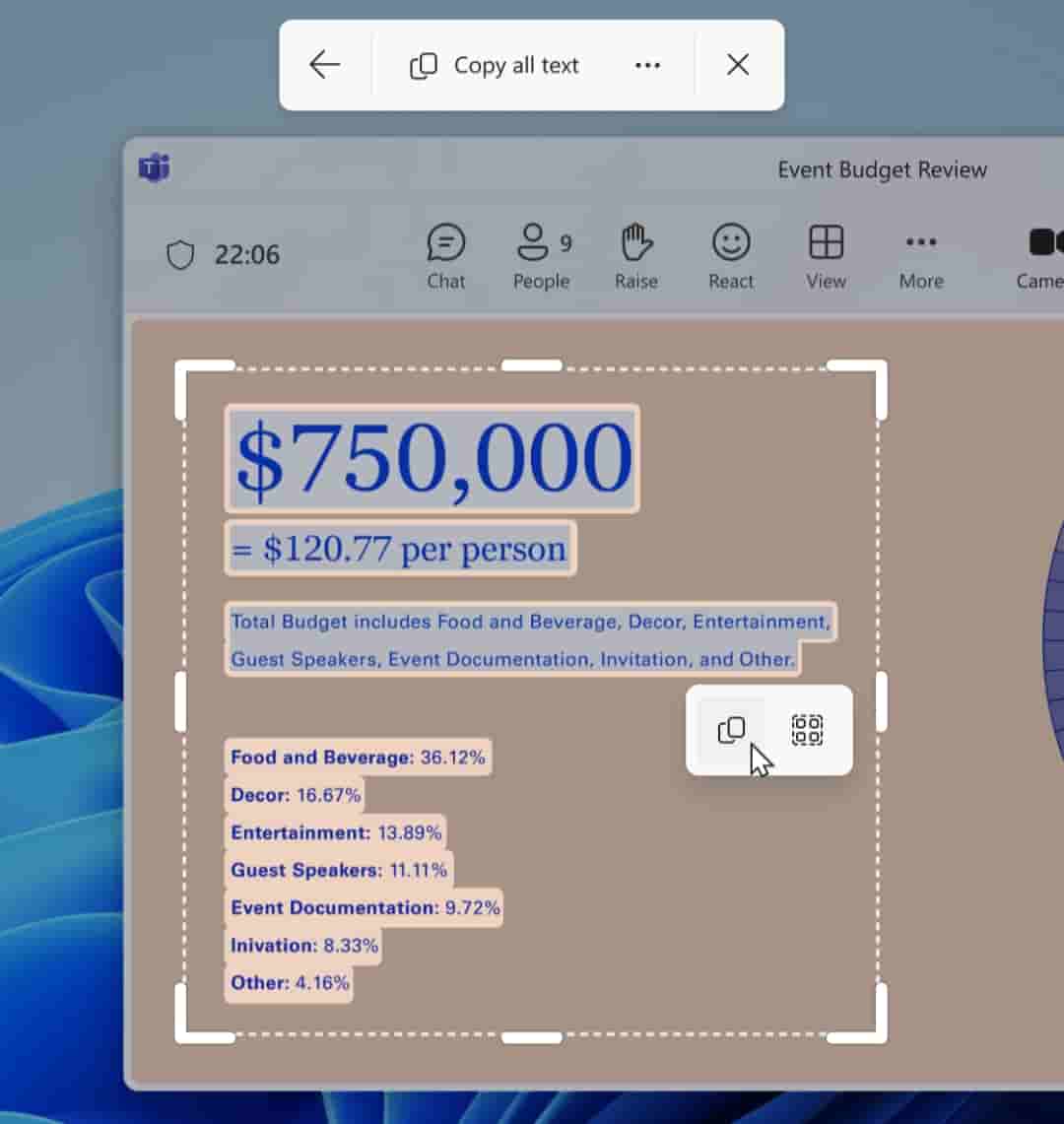 Text Extractor in Snipping Tool capture bar begin rolling out to Windows Insiders in Canary and Dev Channels on Windows 11