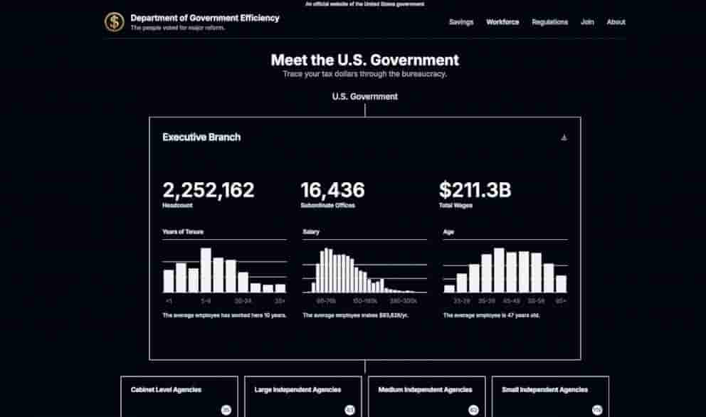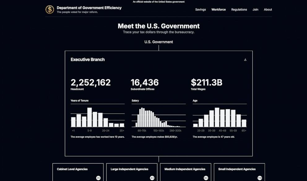 The Department of Government Efficiency officially launched their website; Includes workforce info, regulations info and more
