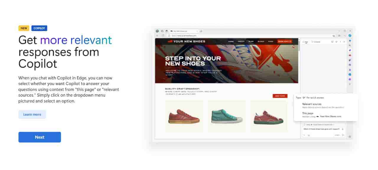 Now you can chat with copilot in Edge and ask a question from it deciding whether you want it to respond using context from “this page” that you have opened or any other “relevant sources”. This makes sure that you get a response from the page from where you want thus making it easy for you to make the decision.