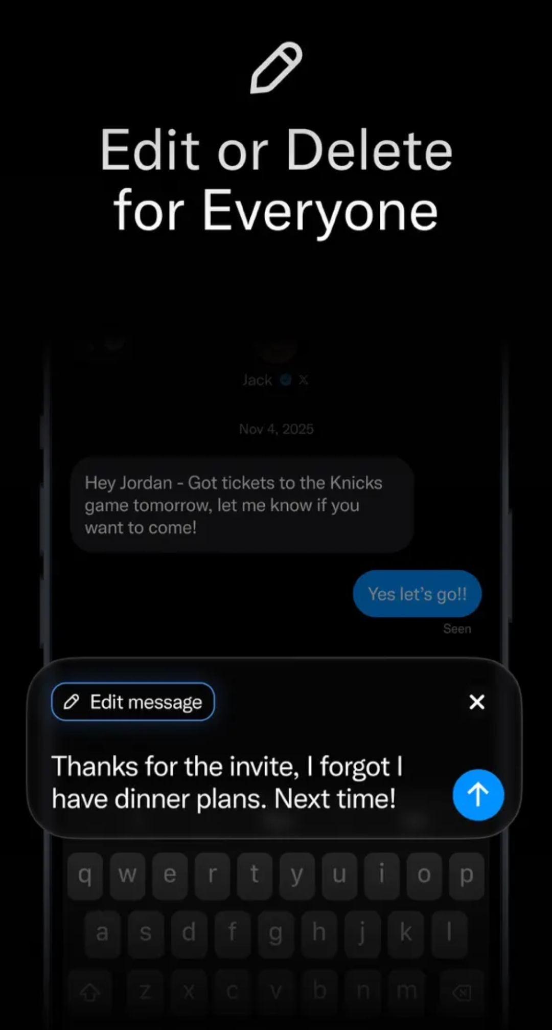 Users can sign in with their X account, and they can find their X contacts there- friends, family, creators and colleagues. Every message is end-to-end encrypted with a key pair unique to you, protected by a PIN that never leaves your device. No one can read your conversations, not even X.