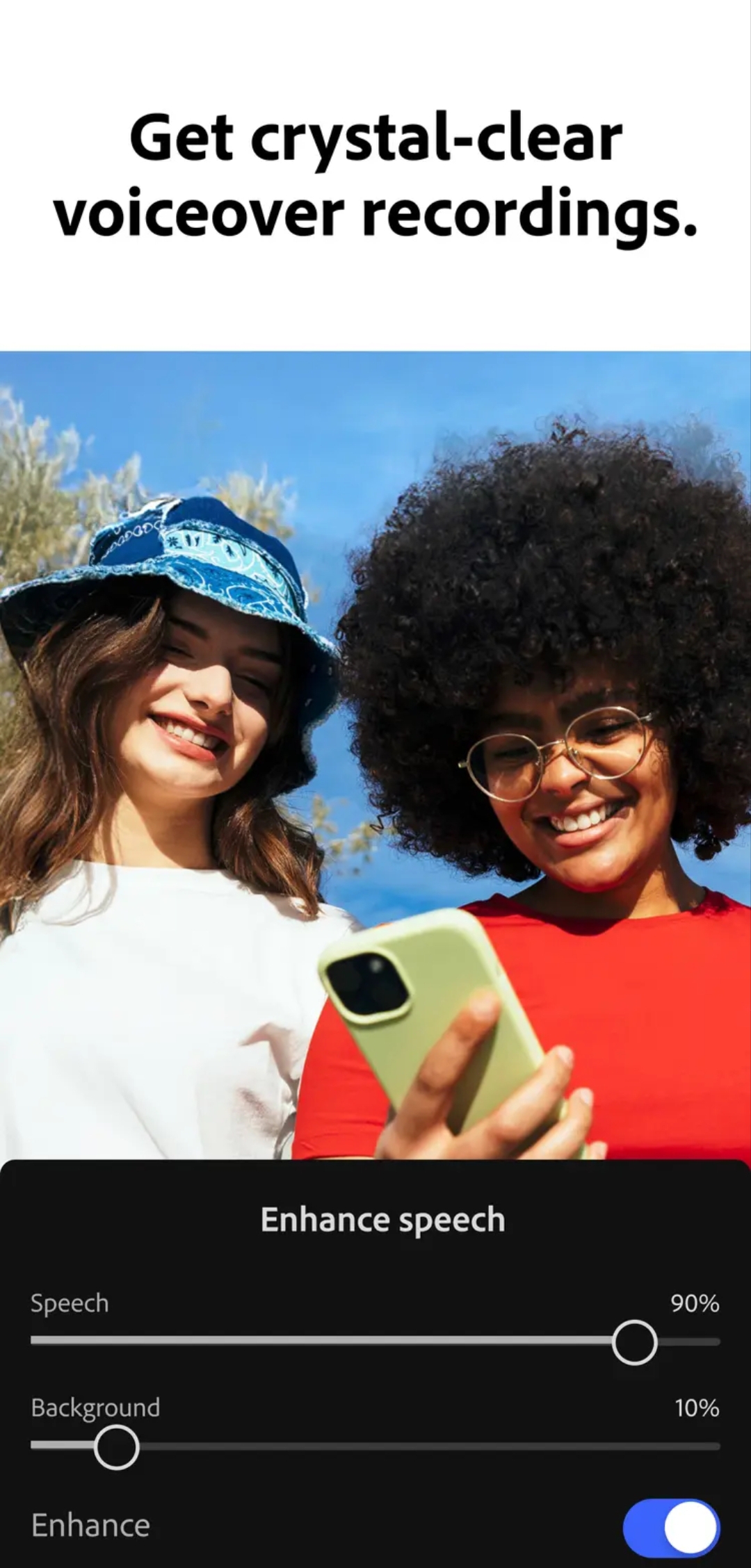 - With Generative Sound Effects, use a text prompt and your own voice to nail down the exact timing, emotion, and inflection you need. Use AI-powered Enhance Speech to record voiceovers that sound crisp and clear, even if recorded in a noisy environment.