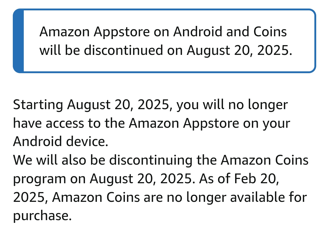 Amazon to shut down its Android App Store from 20th August, 2025; Amazon coins are no longer available for purchase