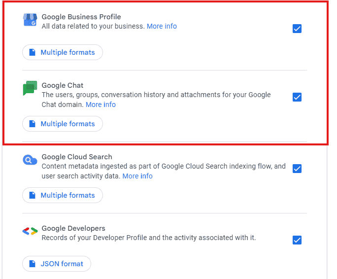 If you are a business owner and want to download your previous chats, you can do so by visiting the Google Takeout page. You may need to sign in if prompted. Once signed in, scroll down to find the options for “Google Business Profile” and “Google Chat.” Select both options and follow the on-screen prompts to download your data.